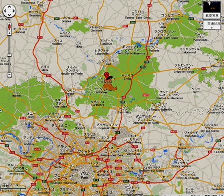 パリ中心部から北に約20kmぐらい、パリ北駅から列車で25分、