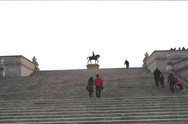 歩き難い石畳道をてくてくと登って行きます。丘の高さは129mです。 |