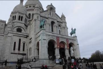 サクレ・クール聖堂です。正面入口の上の2つの銅像は、聖ルイ王とジャンヌ・ダルクを表しています。 |