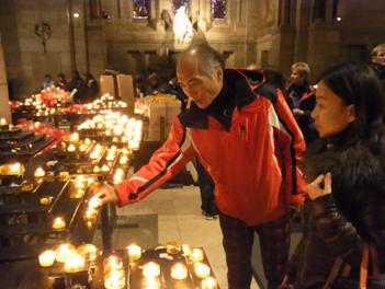 サクレ・クール聖堂の中です。10月に62歳で死んだ妹の為にローソクを献灯してきました。聖堂内は撮影は禁止の筈でしたが・・・・ |