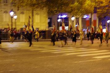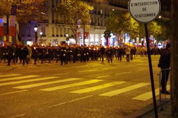 なのです。今日は11月11日、第一次世界大戦の休戦記念日だったのです。シャンゼリゼ通りを行進する人々は当時の服装をして行進して