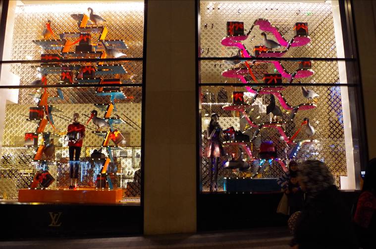 ルイヴィトン本店のクリスマス用のディスプレイです。華やかで、本当に綺麗です。